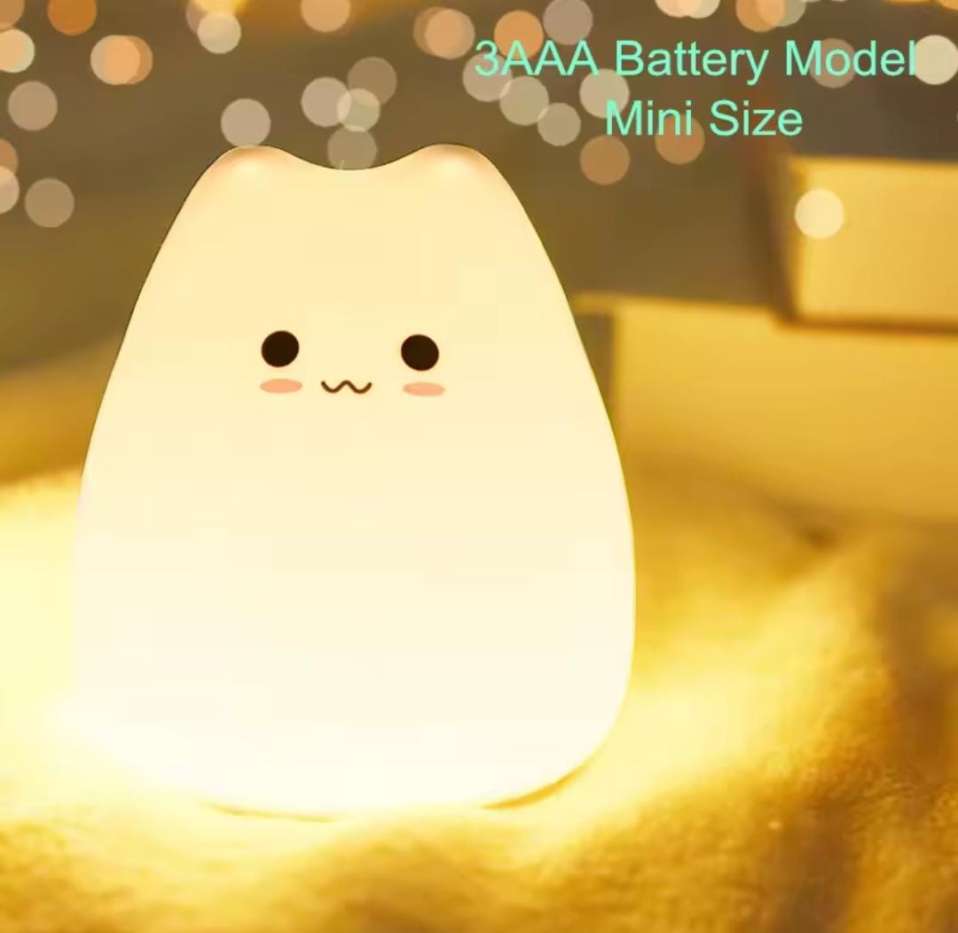 Cute Cat LED Silicone Night Light Lamp – Rechargeable & Remote-Controlled