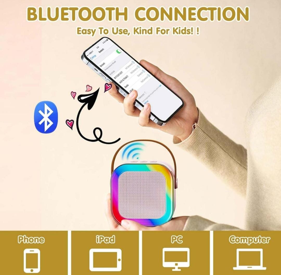 Mini Karaoke Machine – A fun, portable Bluetooth karaoke speaker with a wireless mic, LED lights, voice effects, and up to 10 hours of sing-along excitement for kids and adults alike.